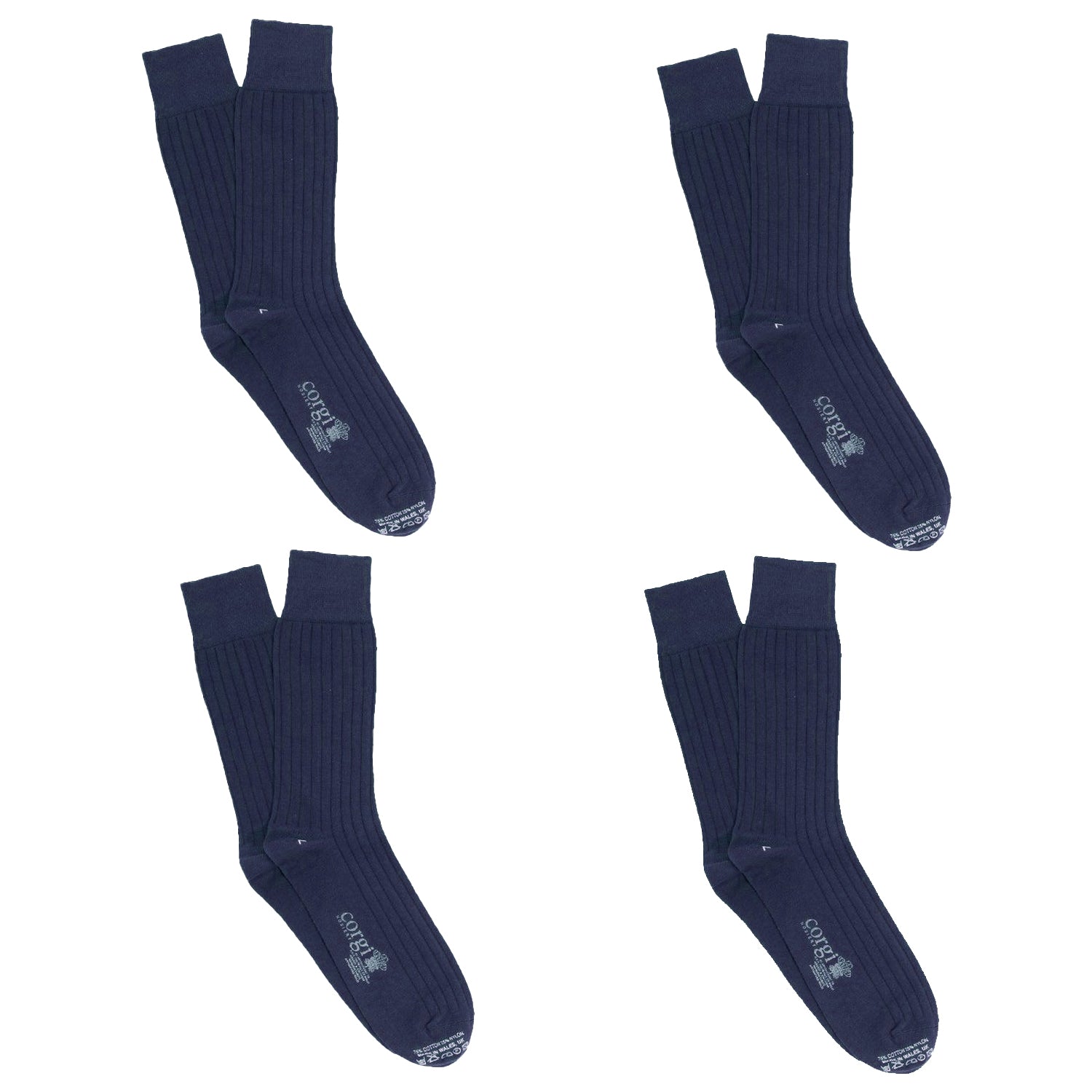 Knitted in a rib knit for an impeccable fit, these classic plain socks are crafted from a blend of premium lightweight cotton and durable nylon. Knitted and hand-finished at our Welsh factory, each 4 pairs offers unmatched quality and comfort. A perfect gift idea they are perfectly packaged in a drawer box. Whether you’re looking for everyday essentials or something to make a statement, these socks combine style and durability seamlessly.