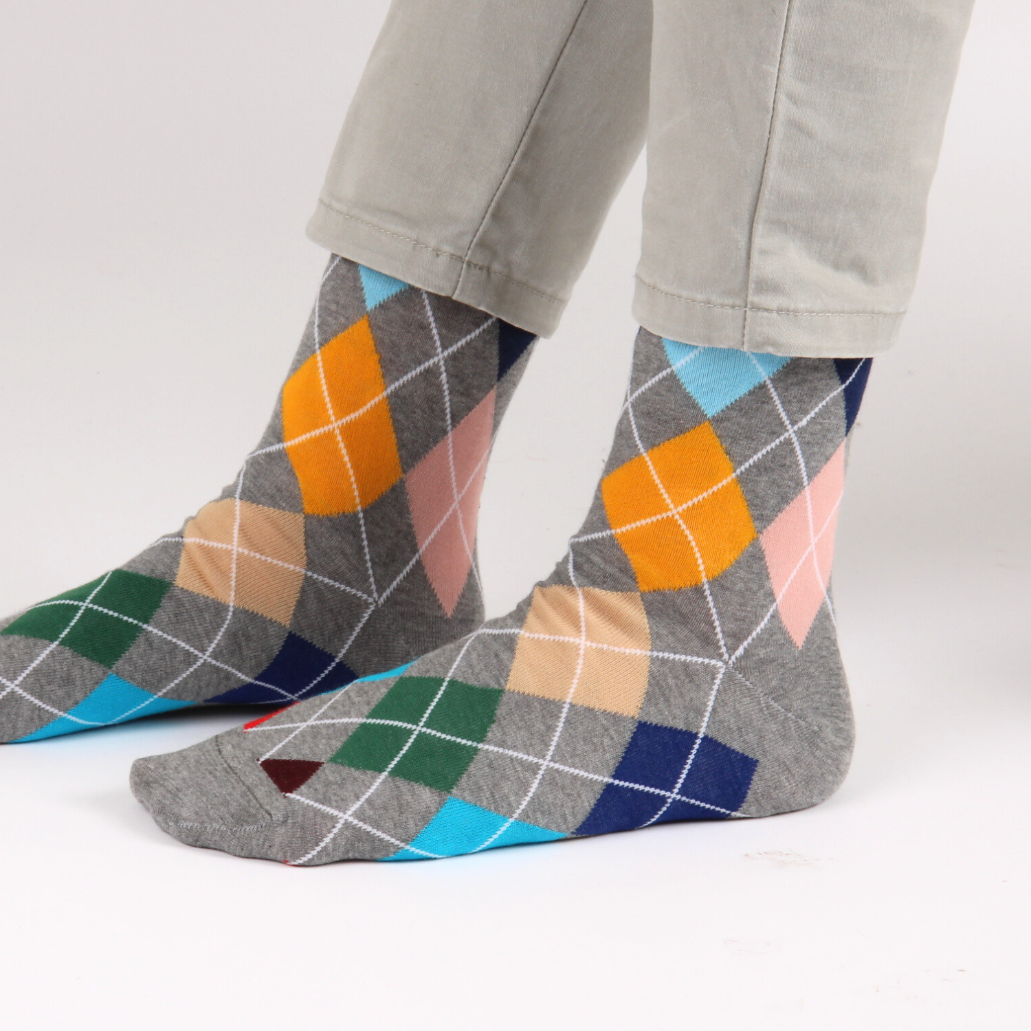 A classic pattern, reimagined for modern elegance. These two pack Men’s Argyle Socks are knitted from soft, lightweight cotton for breathable, all-day comfort. Featuring our two best selling colourways with colourful argyle diamonds and a crisp white overcheck, they bring a touch of heritage charm and a pop of colour to any smart or casual look.
