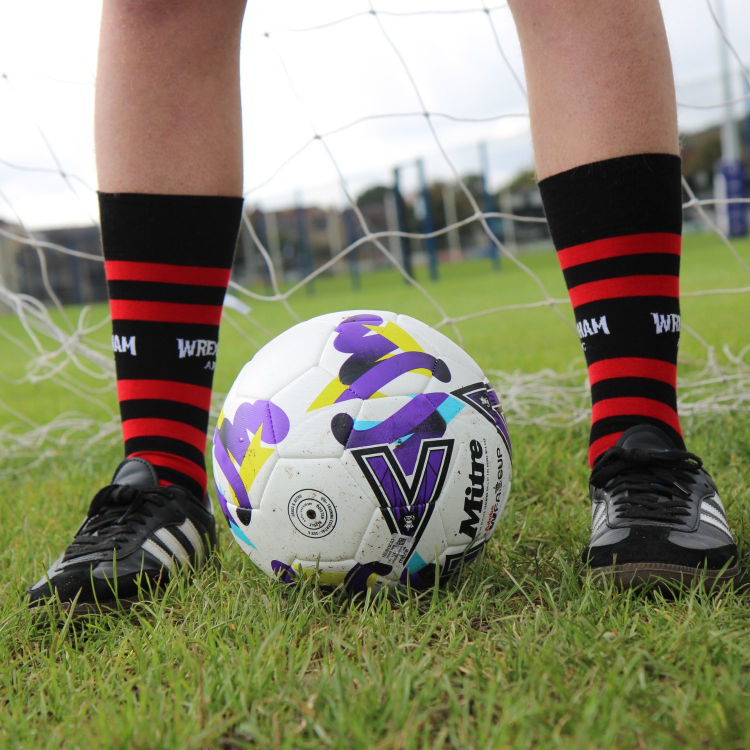 Step into heritage style with these lightweight cotton socks, inspired by Wrexham AFC’s classic vintage kit. Featuring bold red and black hoops, the design pays tribute to the club’s history while offering a modern, comfortable fit. Knitted from a soft, breathable cotton blend, these socks are perfect for everyday wear, keeping your feet cool and comfortable throughout the day. Finished with the official Wrexham AFC logo, they combine club pride with timeless style—ideal for both match days and casual wear.